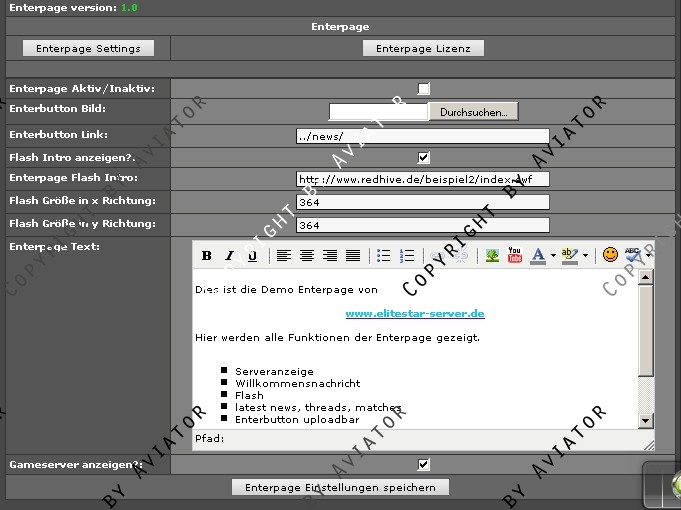 - Enterpage abschaltbar übers Adminmenü!!!!